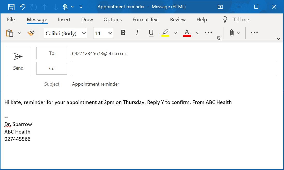 Email2SMS is our service that allows email messages to be sent from a standard Email client, such as Outlook, Office365, or GMail, and delivered to a mobile handset via SMS. Any replies are also delivered to your Email's inbox.